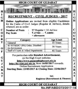 How to Apply: Interested Candidate may apply Online through the website http://hc-ojas.guj.nic.in/ on or before 22.06.2017